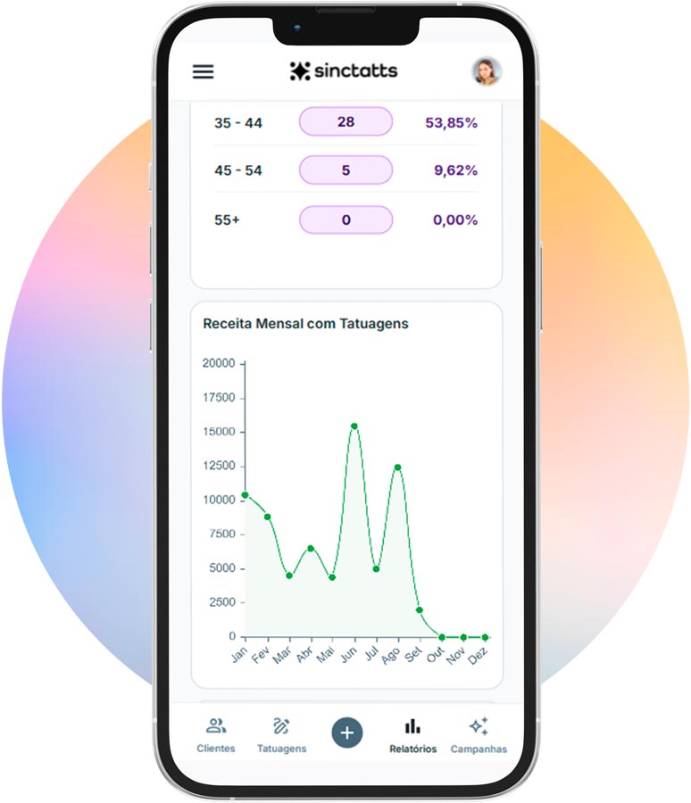 A Sinctatts foi desenvolvida 100% para tatuadores autônomos. Super simples de usar direto do celular, é como ter um assistente digital no seu bolso que nunca esquece nada e sempre te ajuda a faturar mais.